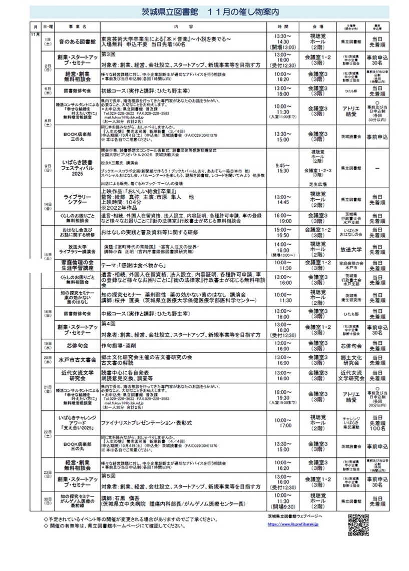 図書館イベントカレンダー