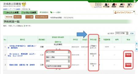 県立図書館を受取館とする場合、「ご用意できました」が表示されれば、県立図書館で貸出手続が可能です。